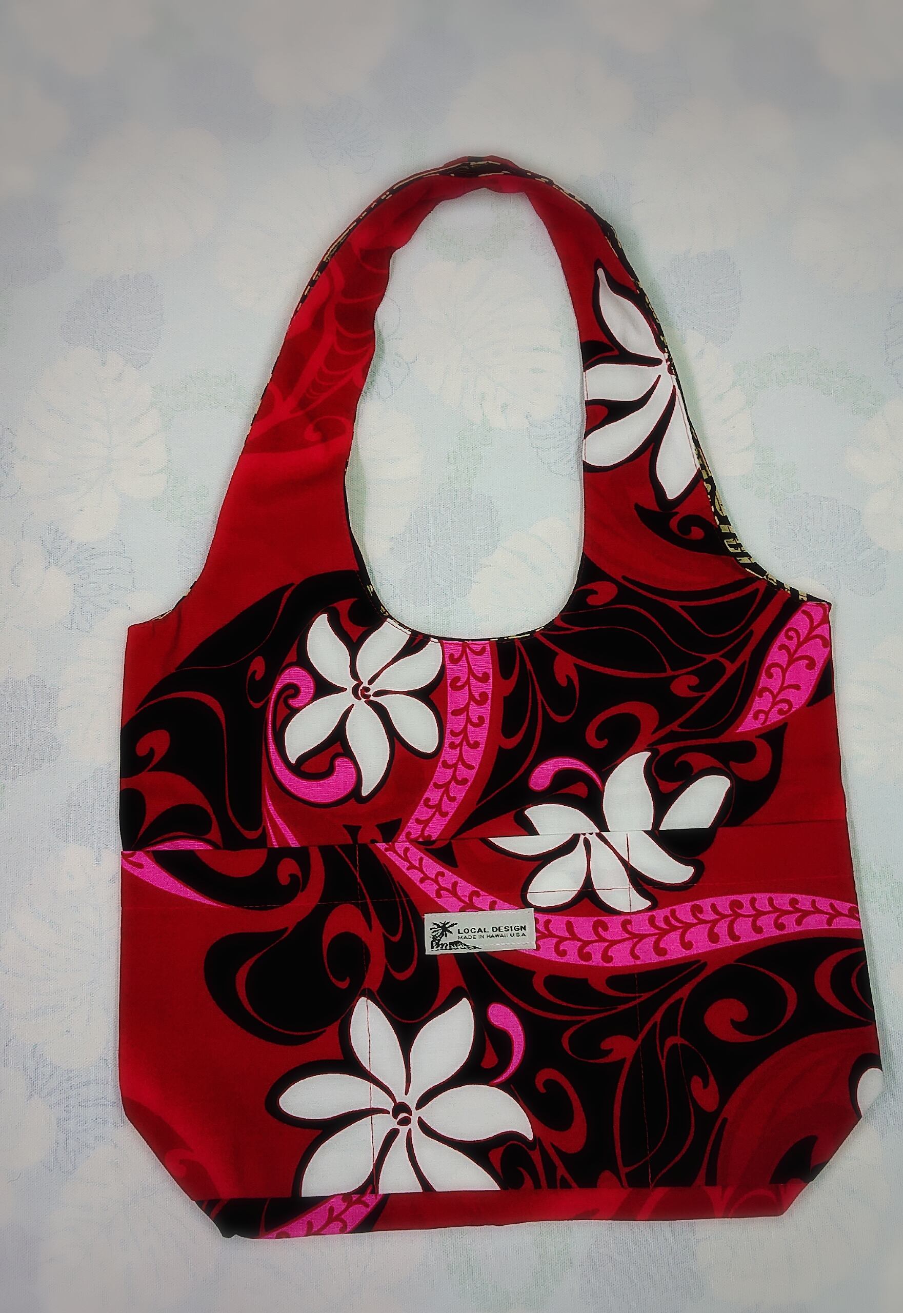 ●LOCAL DESIGN●MADE IN HAWAI●リバーシブル仕立、両柄ポケット3ヶ●上幅36.5cm,下幅27cm●深さ28.5cm●マチ10cm●持ち手59cm●ポケット深さ16.4cm,幅11.9cm・13.6cm・11cm●ハワイ買い付け品●ギフトバッグ付き※返品はお受けできません。※お品物は、全国一律、レターパックにて発送いたします。
